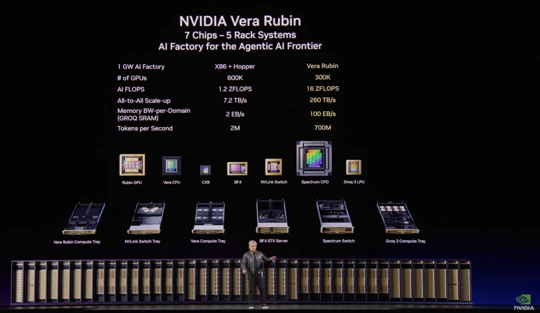 4)Vera Rubin:在此前6类芯片基础上,新增了Groq 3 LPU。