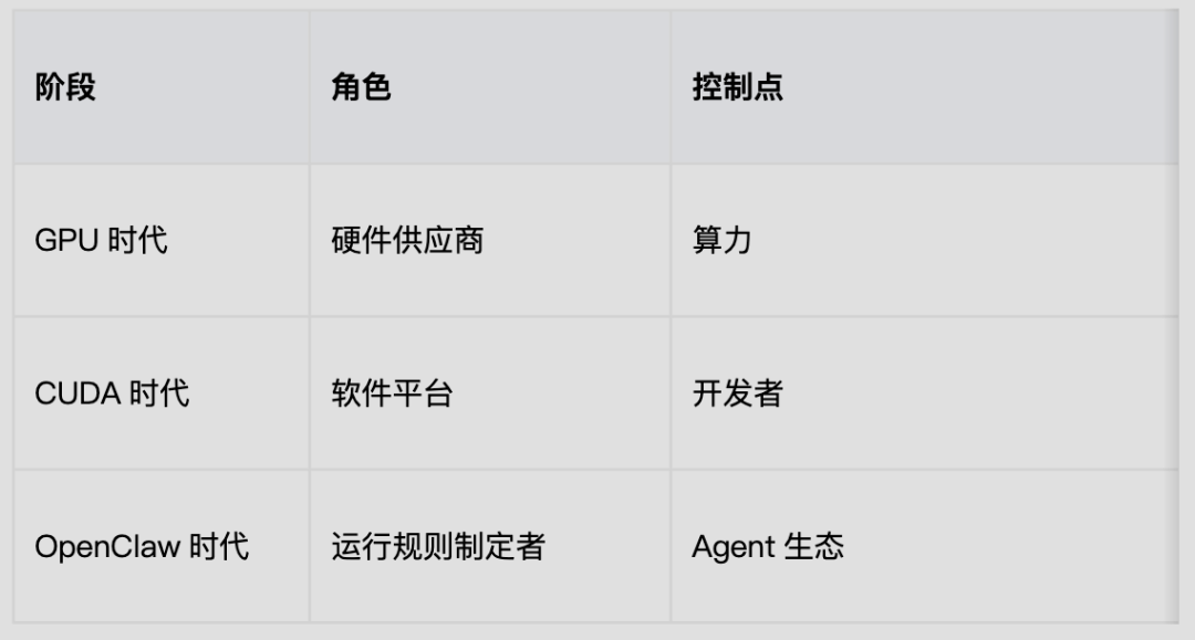 如果CUDA绑定的是开发者,那么OpenClaw试图绑定的是所有AI Agent的运行方式。