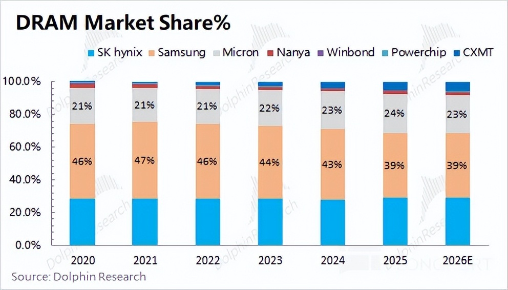 DRAM 是公司最为核心的业务,最主要的也是 HBM 和 DDR 等产品这两部分。