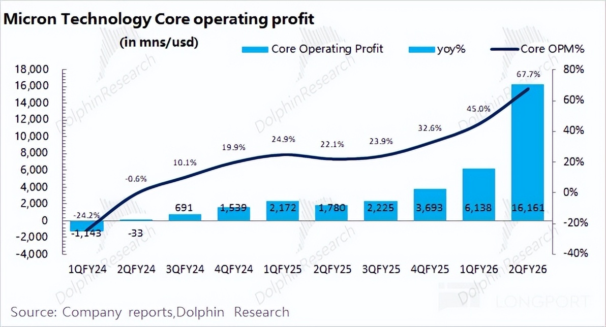 美光公司本季度收入和毛利率都明显好于市场预期。在出货量小幅增加的情况下,业绩增长主要来自于存储价格大幅上涨的拉动。