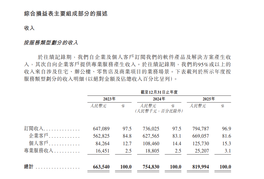 2025年,公司软件吸引的平均月活跃用户约为250万名。个人客户由2023年39万名增加至截至2024年42.68万名,2025年小幅降至41.61万名。企业客户则由2023年的4.1万名不断扩大至2025年的4.7万名。