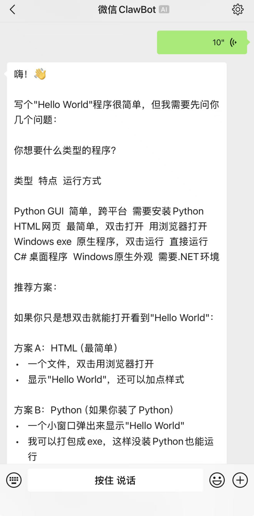 最关键的是,在使用微信和QClaw沟通的过程中,我并没有打字,而是使用语音功能。