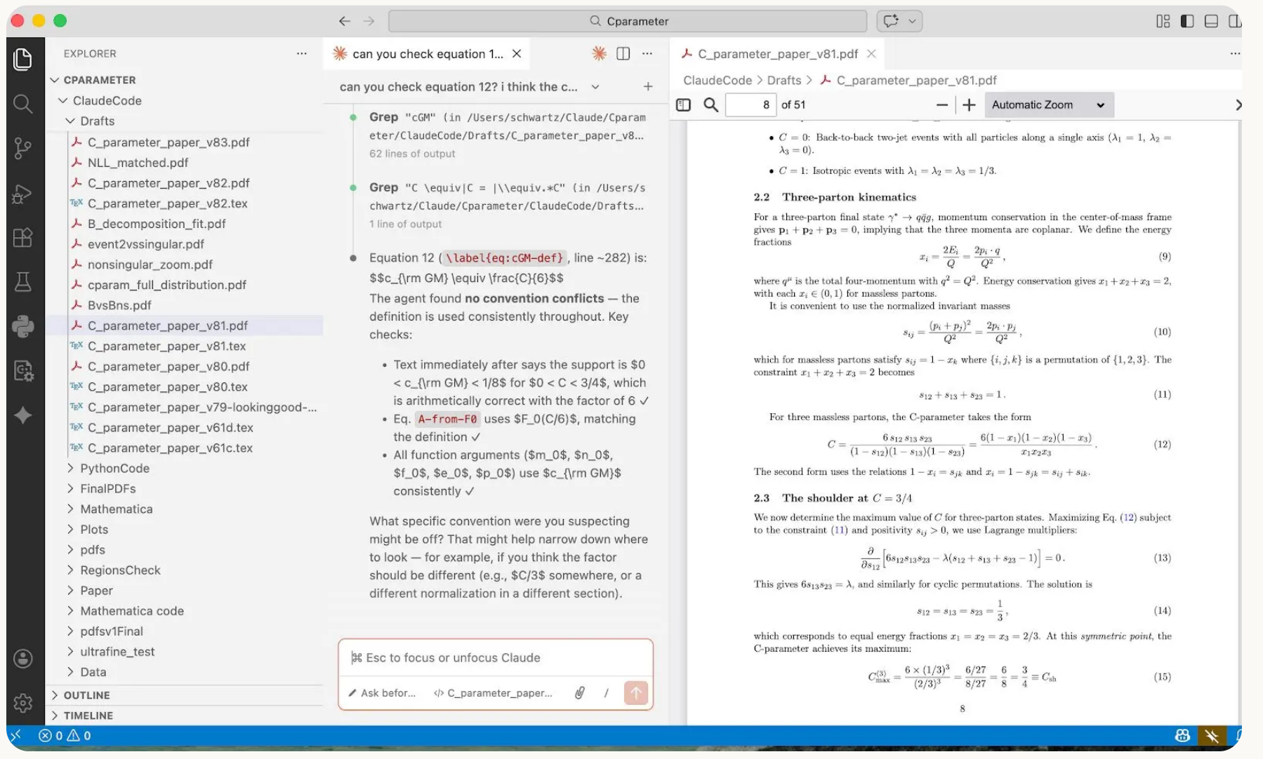要知道,这项课题放在人类世界里,研究生得耗上一到两年才能啃下来,就算是Schwartz教授亲自上手,也得花三到五个月。但Claude在教授约50-60小时的“贴身监督”下,仅用两周就交出了一篇可直接投稿的量子场论论文。Schwartz粗略估算,这场实验的科研效率,直接提升了足足十倍。