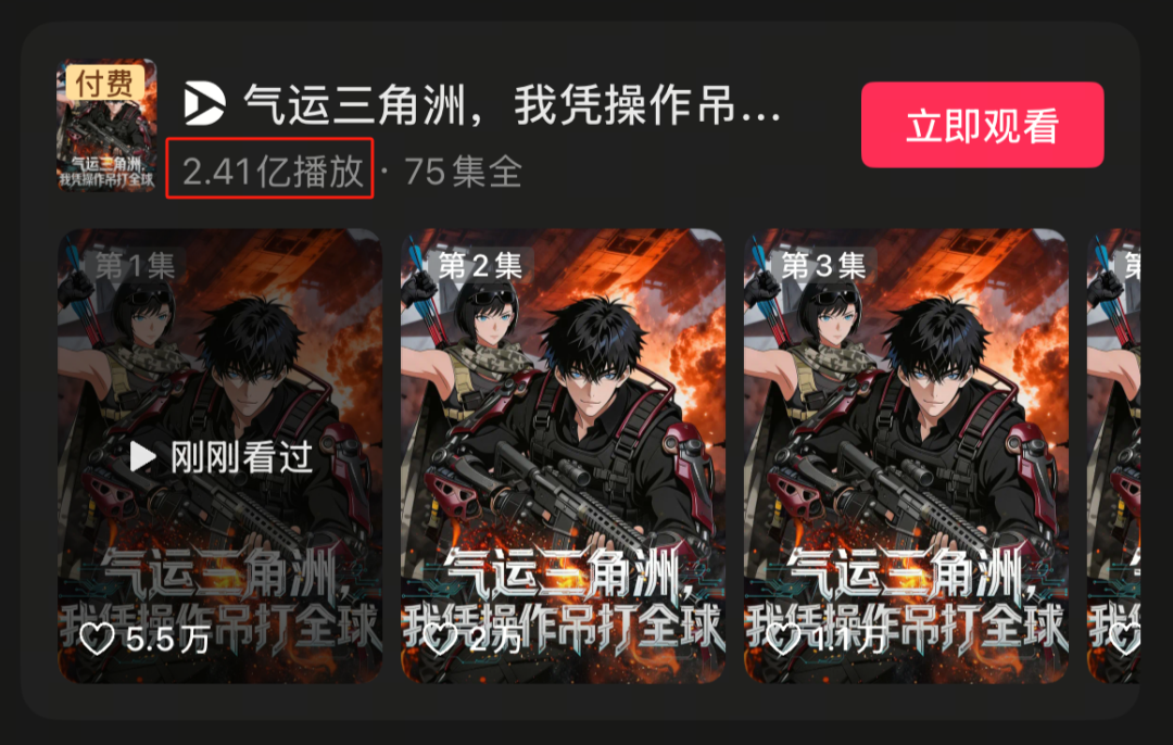 2026年开年,AI 漫剧《气运三角洲,我凭操作吊打全球》成了“黑马”,这部完全由算法生成的AI漫剧,是3人团队仅用5天便完成的制作,首播29小时便达到2亿播放量。