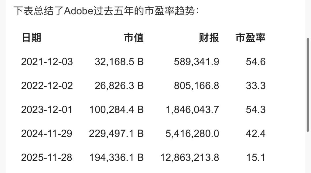 Adobe的PE一路走低,眼下已经来到了15倍左右,还不如很多基础设施型企业,作为利润率25%以上的行业龙头老大,从个人用户到大型企业,Adobe在图形处理这一赛道拥有统治性的地位,这当然是一个比较低的估值。