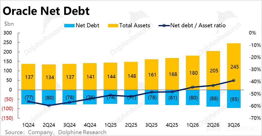 为了支撑高额且快速拉升的资本支出,截至本季公司官宣已完成了 450~500 亿融资计划中的约 300 亿,其中新增发债约 250 亿、发行优先股约 50 亿。净有息负债从 25 财年底的约 810 亿,攀升到了当前的 950 亿,净负债/资产比例为 39%。