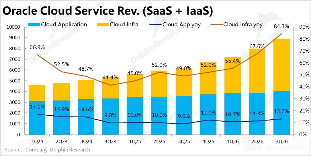 3、长桥海豚君认为,甲骨文后续的增长潜力与市场争议,均集中在 IaaS 业务尤其是 OCI AI 相关业务上。